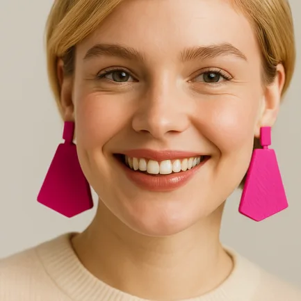 Thoughtfully made, sustainably printed, and finished by hand, these bold geometric drops invite you to wear your heart—with power, not cliché.